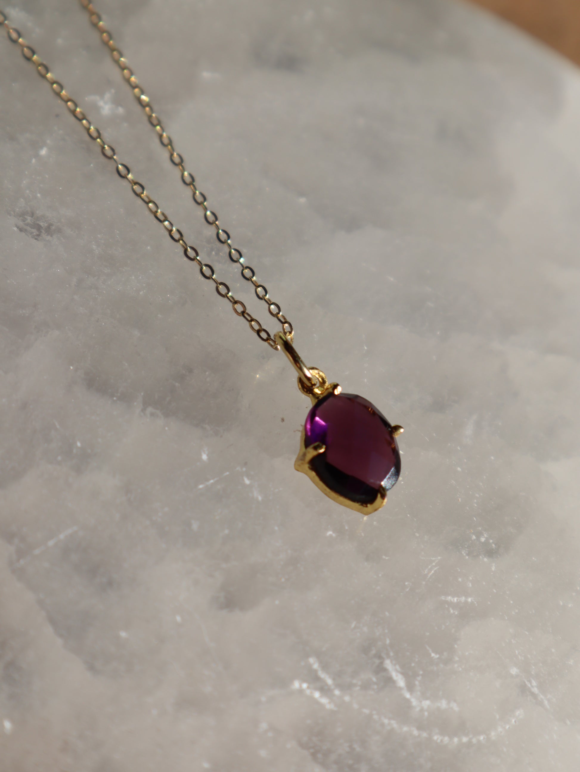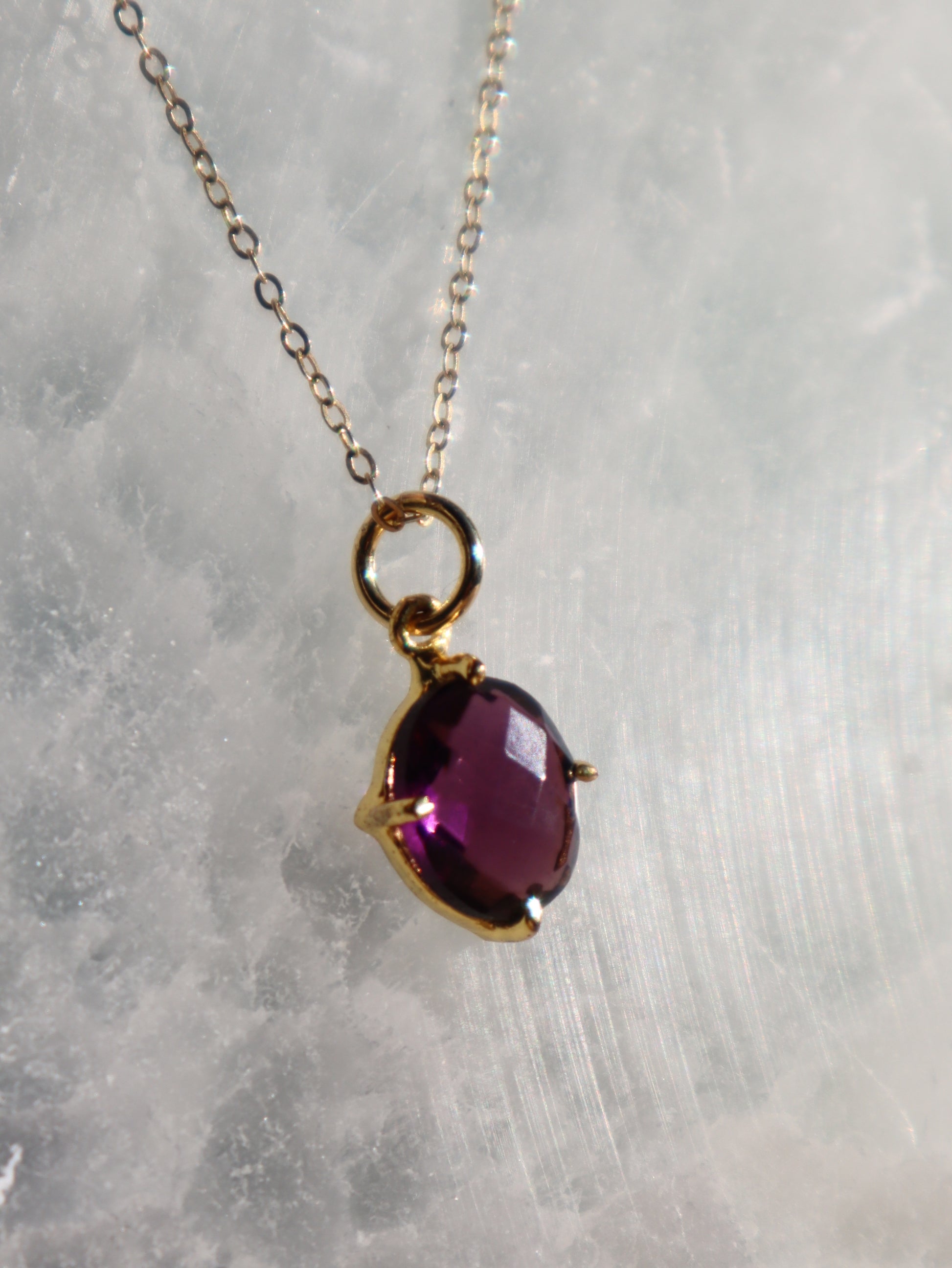 gefasster Amethyst Anhänger, tief violett und hohe Qualität, vergoldetes 925 Sterling Silber inkl. Kette. 1x vorhanden - bitte Kettenlänge wählen