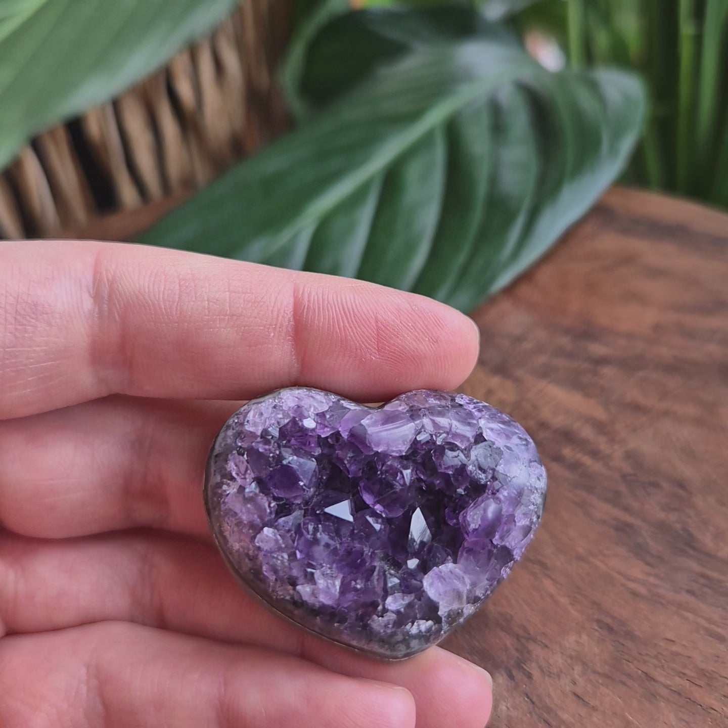 Amethyste gehören zur Familie der Quarze. Hier handelt es sich um eine tiefviolette Druse aus Brasilien, welche besonders wertvoll und begehrt sind. Umso dunkelvioletter und klarer die Steine sind, umso stärker sind auch die Heilwirkungen. Drusen sind Hohlräume, in denen Amethyste gewachsen sind. Druse und Stücke davon werden erfolgreich zur Raumharmonisierung, energetischen Reinigung und zum Reinigen und Aufladen von anderen Heilsteinen verwendet. Du kannst hier also deine Schmuckstücke auflegen und so wieder reinigen und energetisieren.