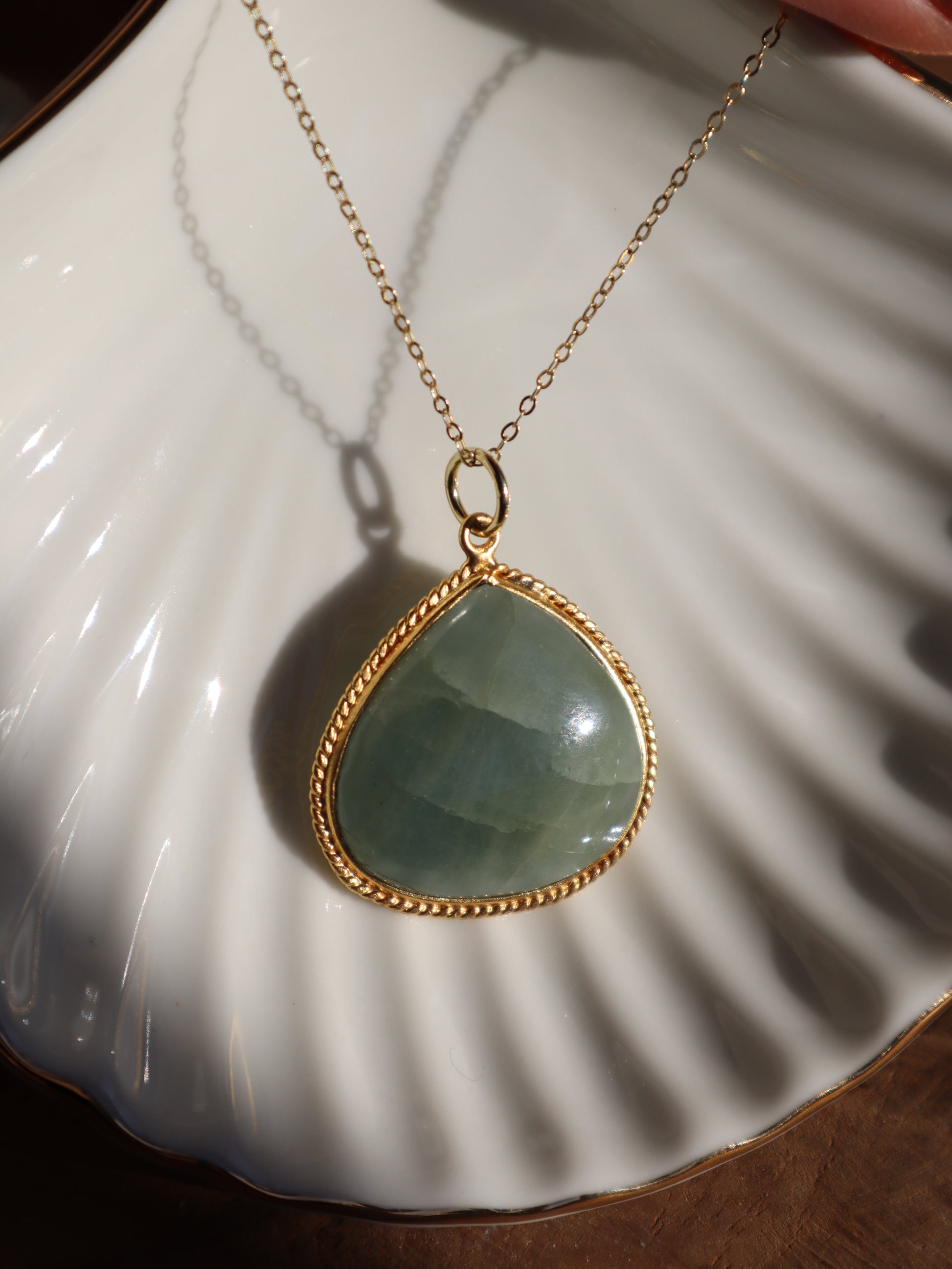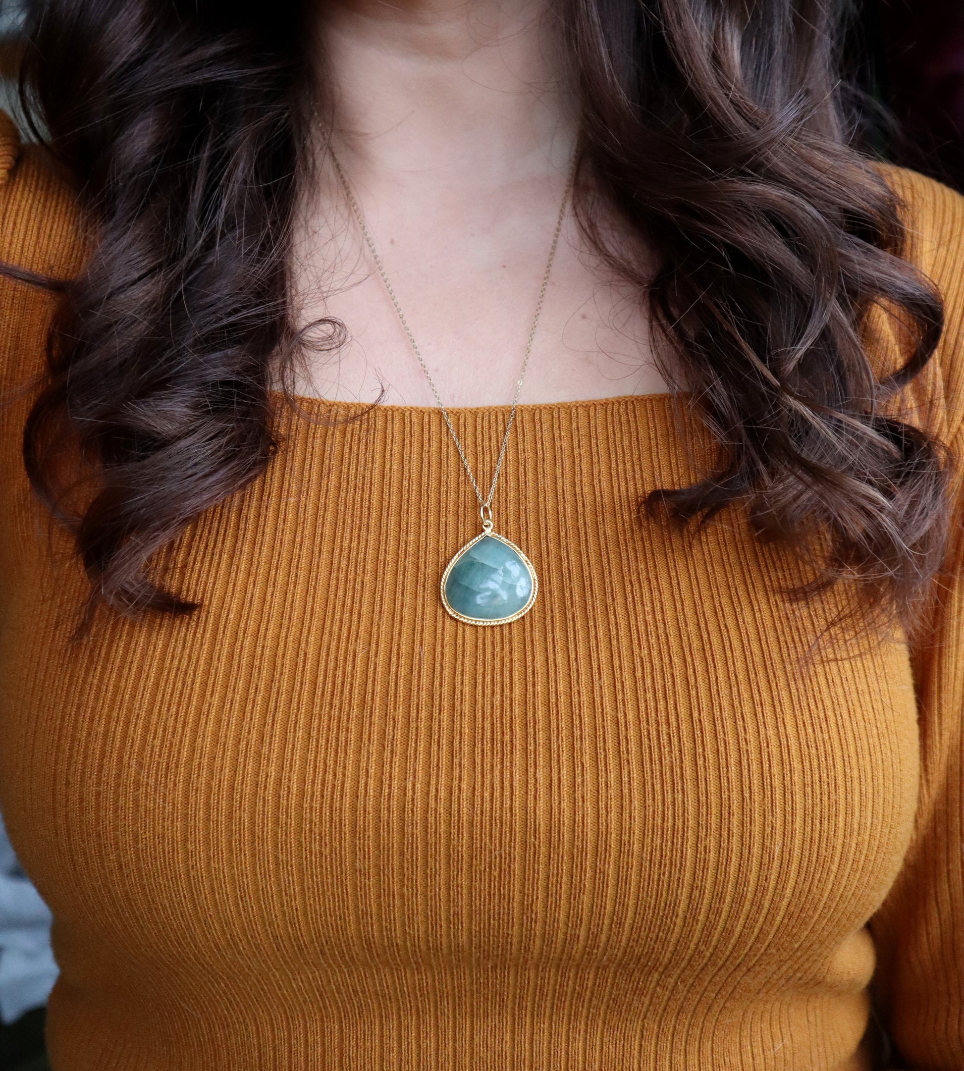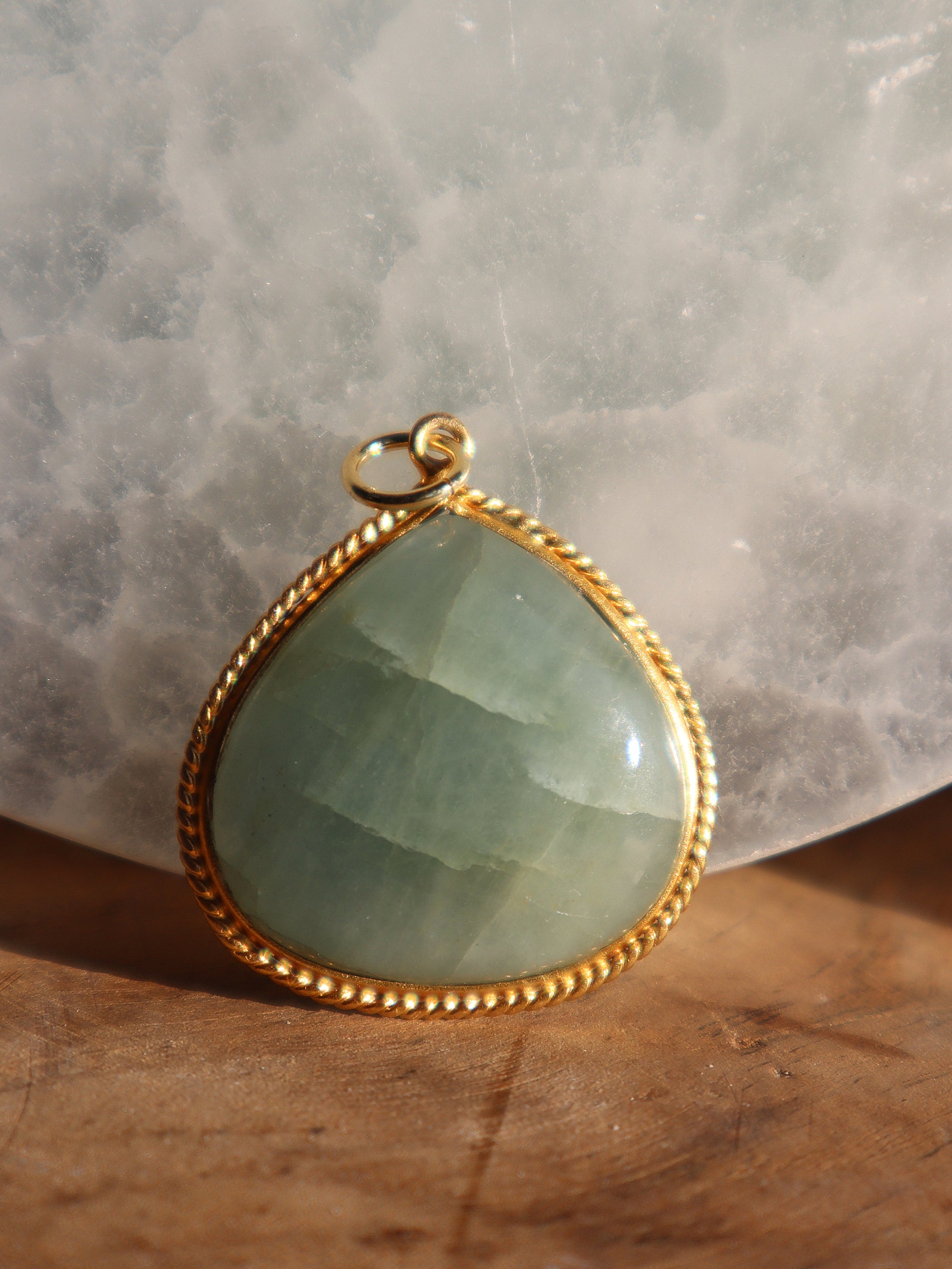 Blau-grüner Aquamarin Anhänger in vergoldeten 925 Sterling Silber gefasst inkl. Kette