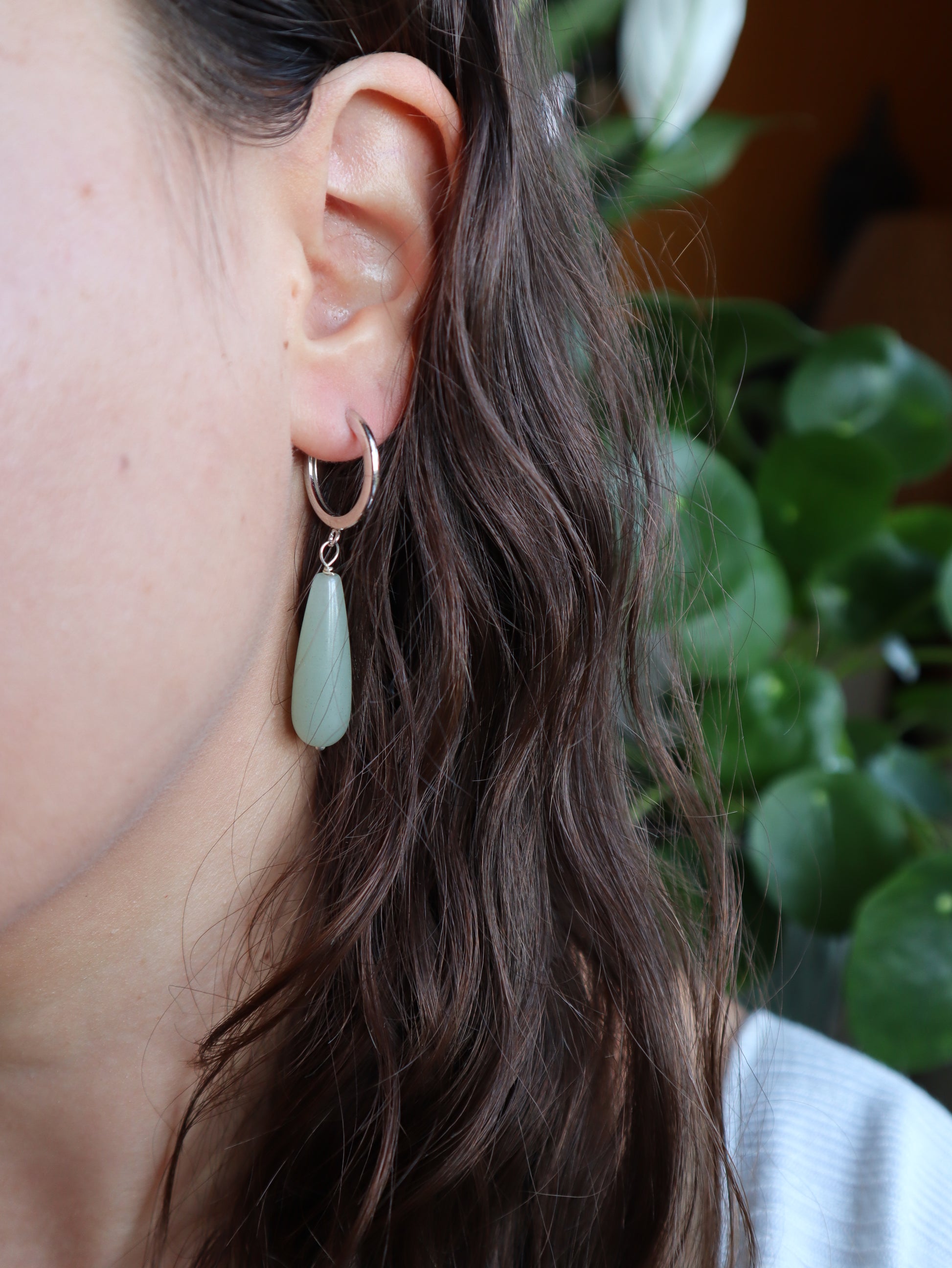 Hochwertige Klappcreolen mit Aventurin Tropfen