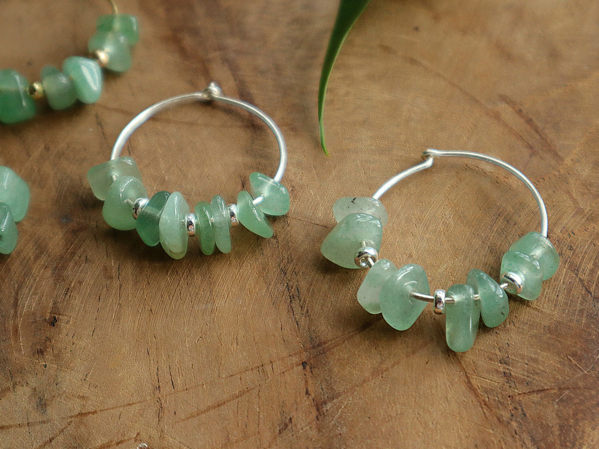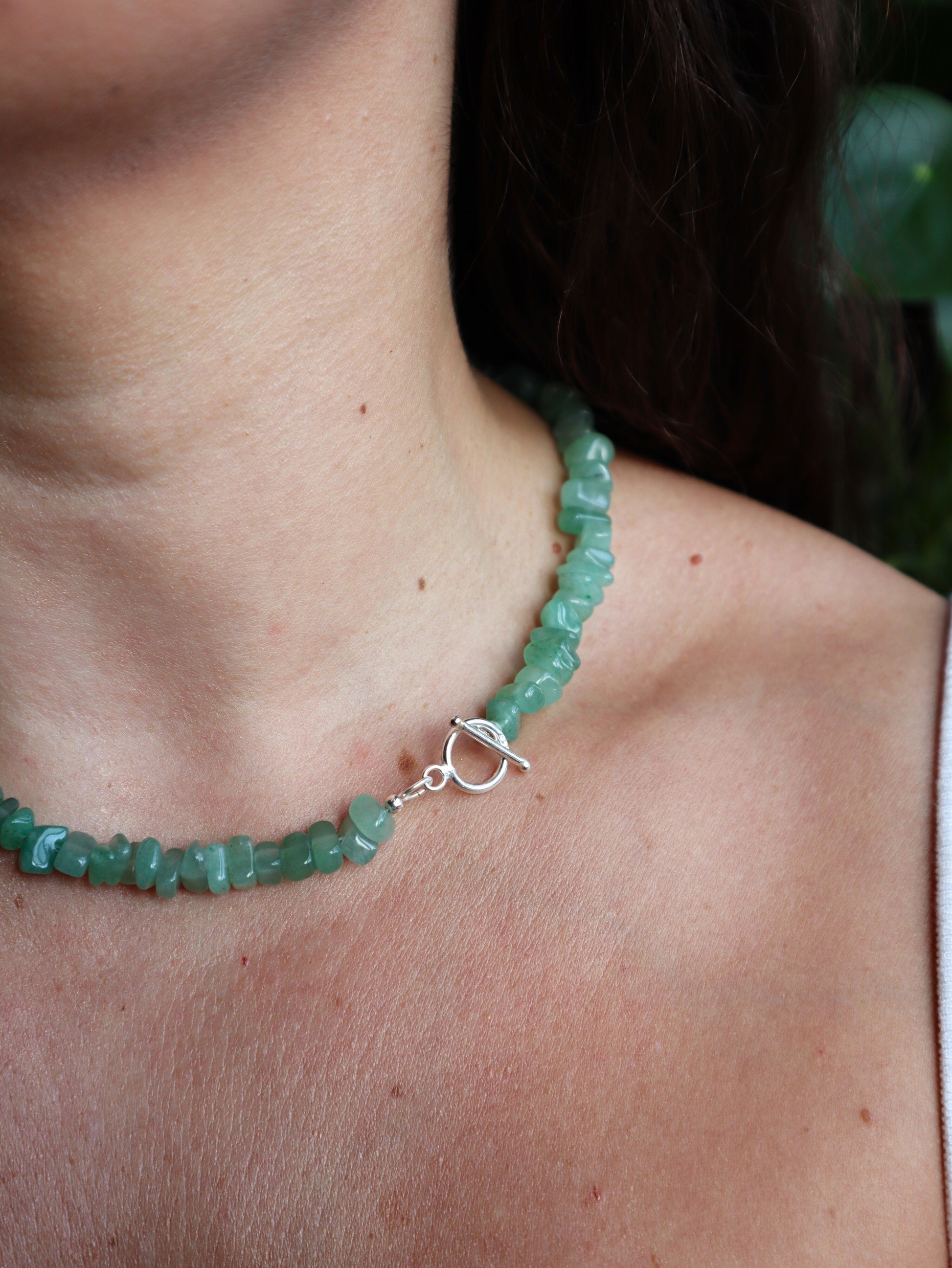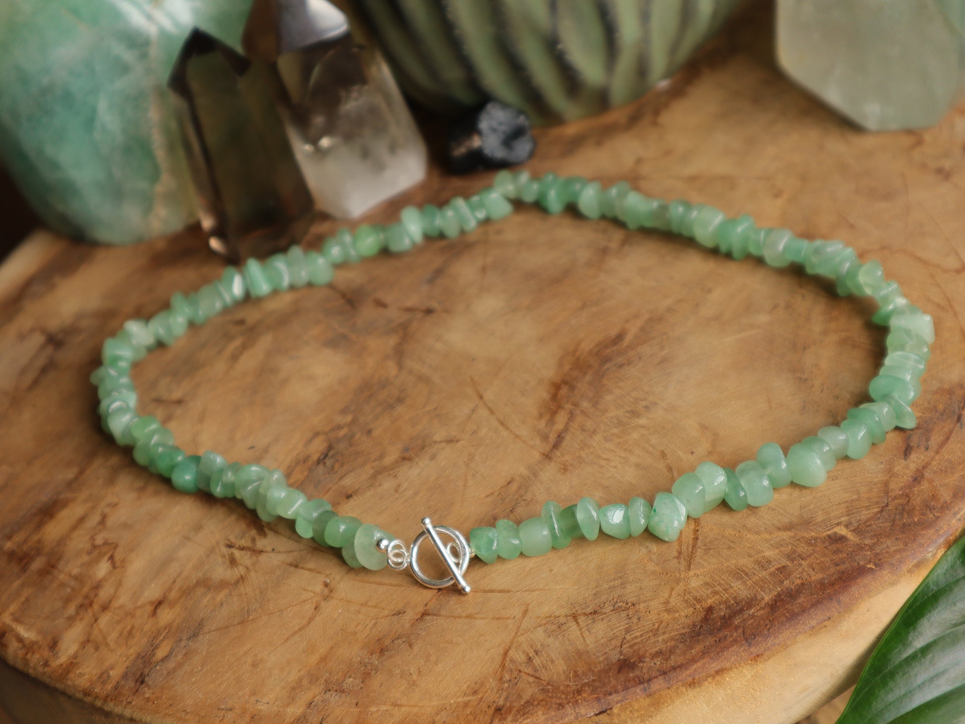 Natürliche Aventurin Splitterkette, mit 925 Sterling Silber Knebelverschluss, Länge = 47 cm, im Sett mit passenden Ohrringen und Armband erhältlich. Ein ganz besonderer Hingucker