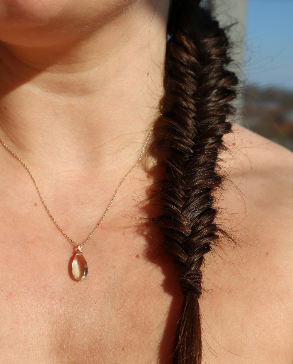 Grüner Amethyst Tropfen mit Kette nach Wahl (Kette und Schmuckdraht aus 925 Sterling Silber)