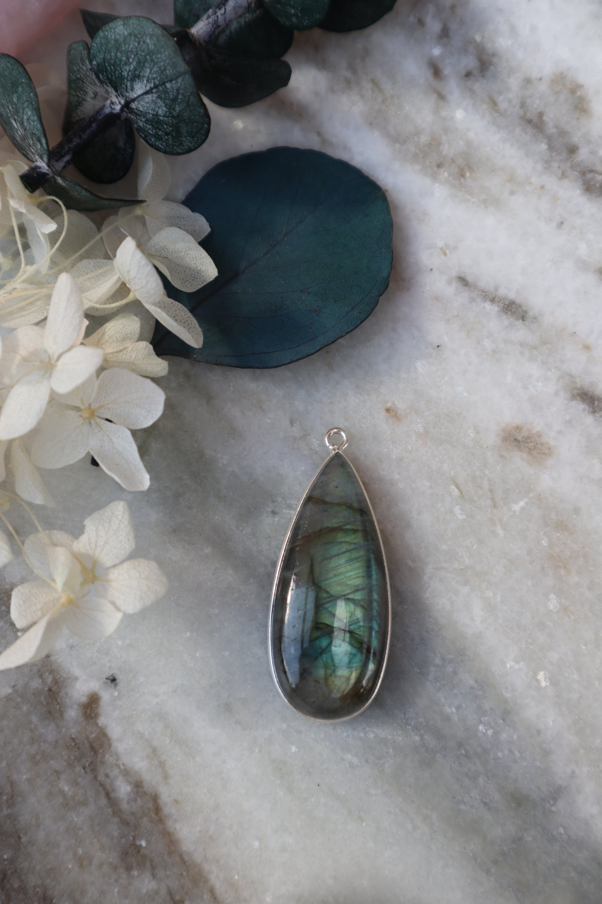 Silber gefasster Labradorit Anhänger (3x1,5 cm) mit 925 Sterling Silberkette