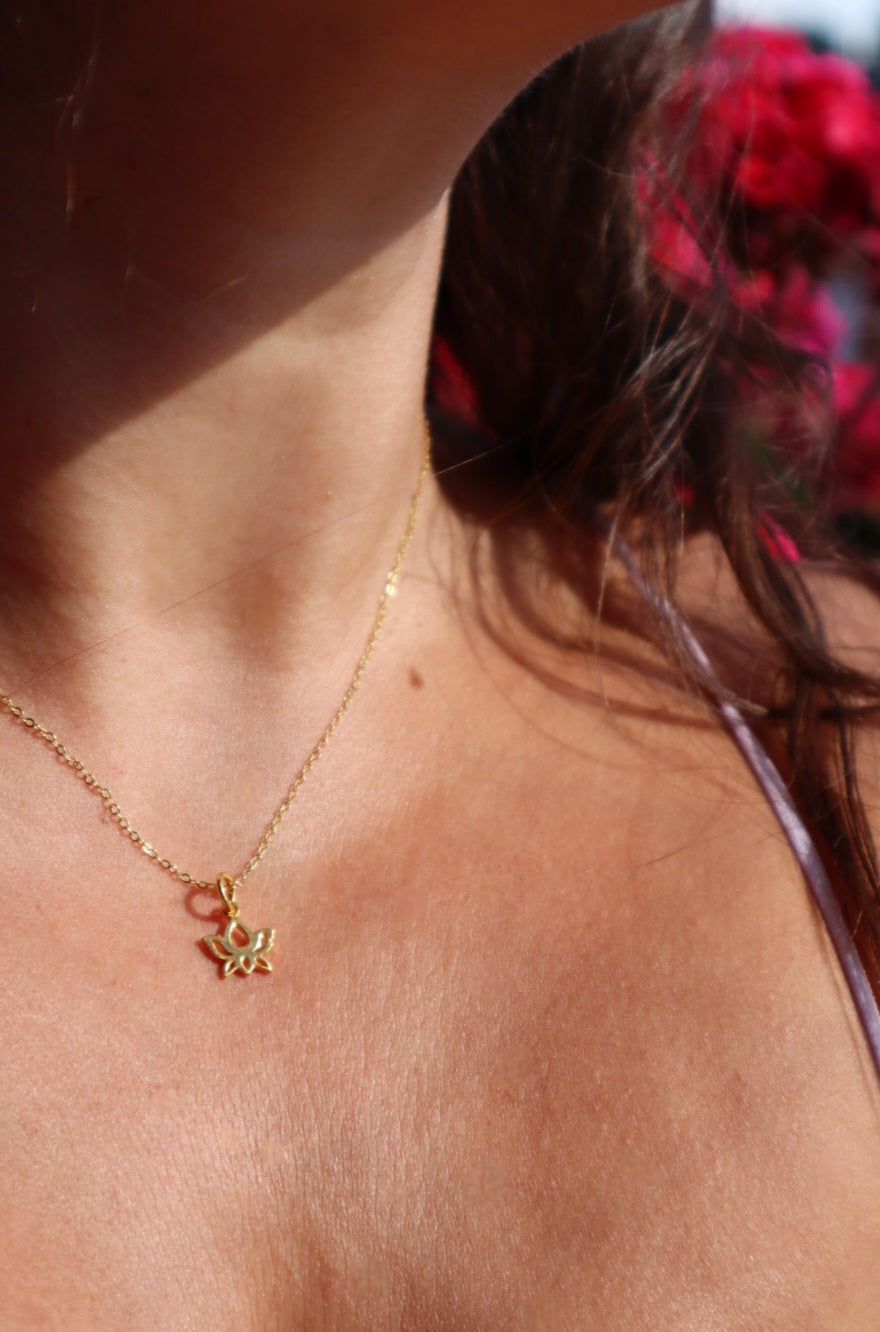 Lotus Anhänger, 18k Vermeil Vergoldung auf Sterling Silber, Länge=11mm, Breite=10,5mm, inkl. Kette