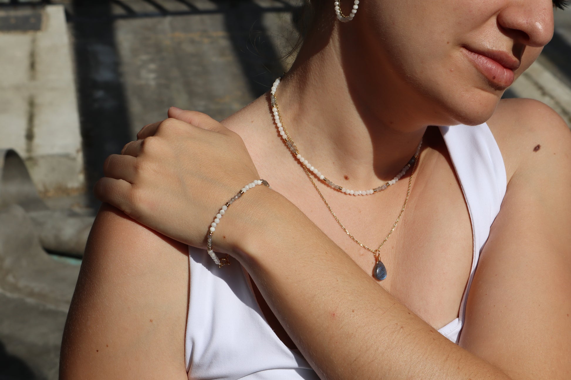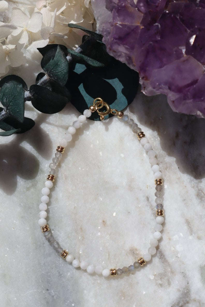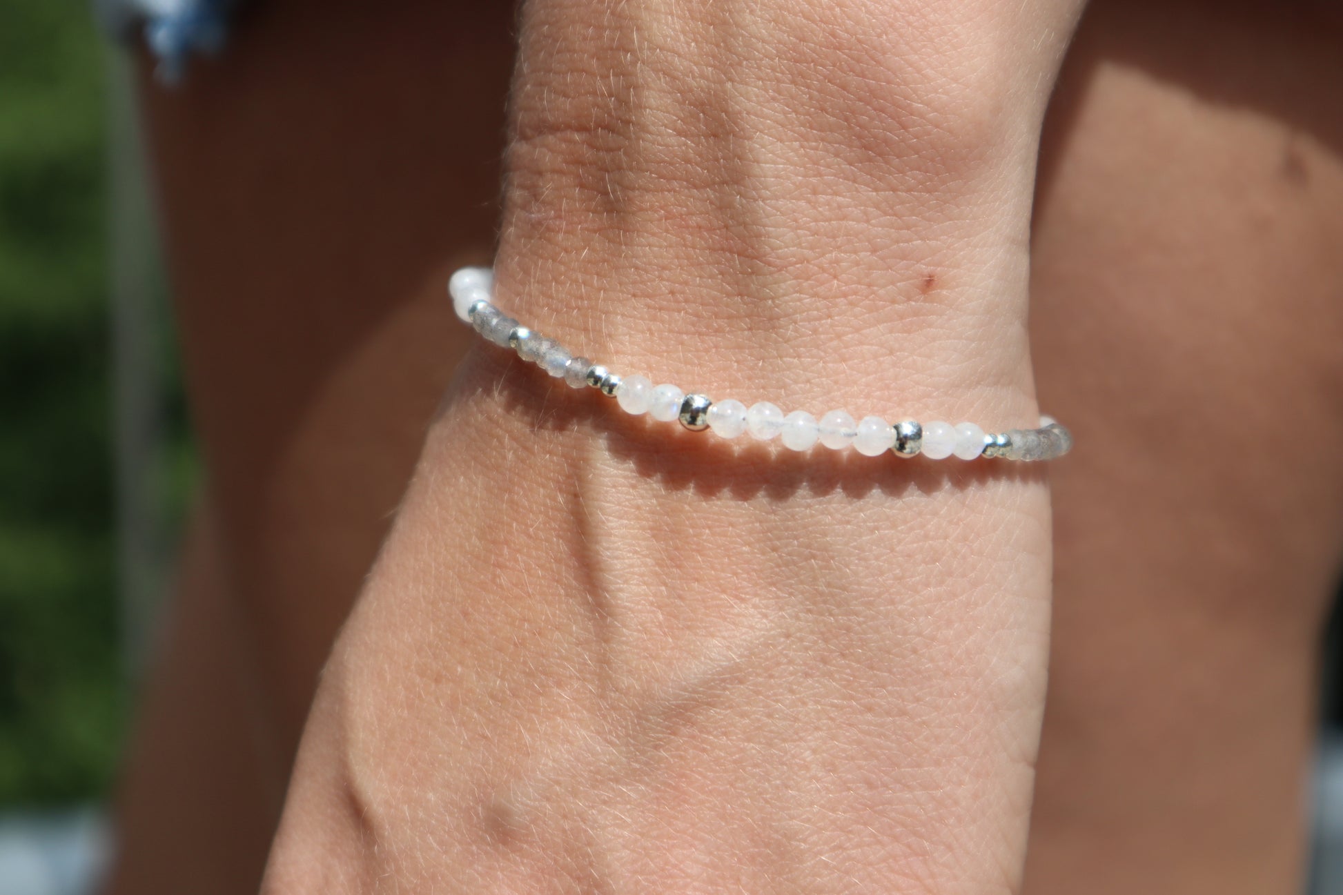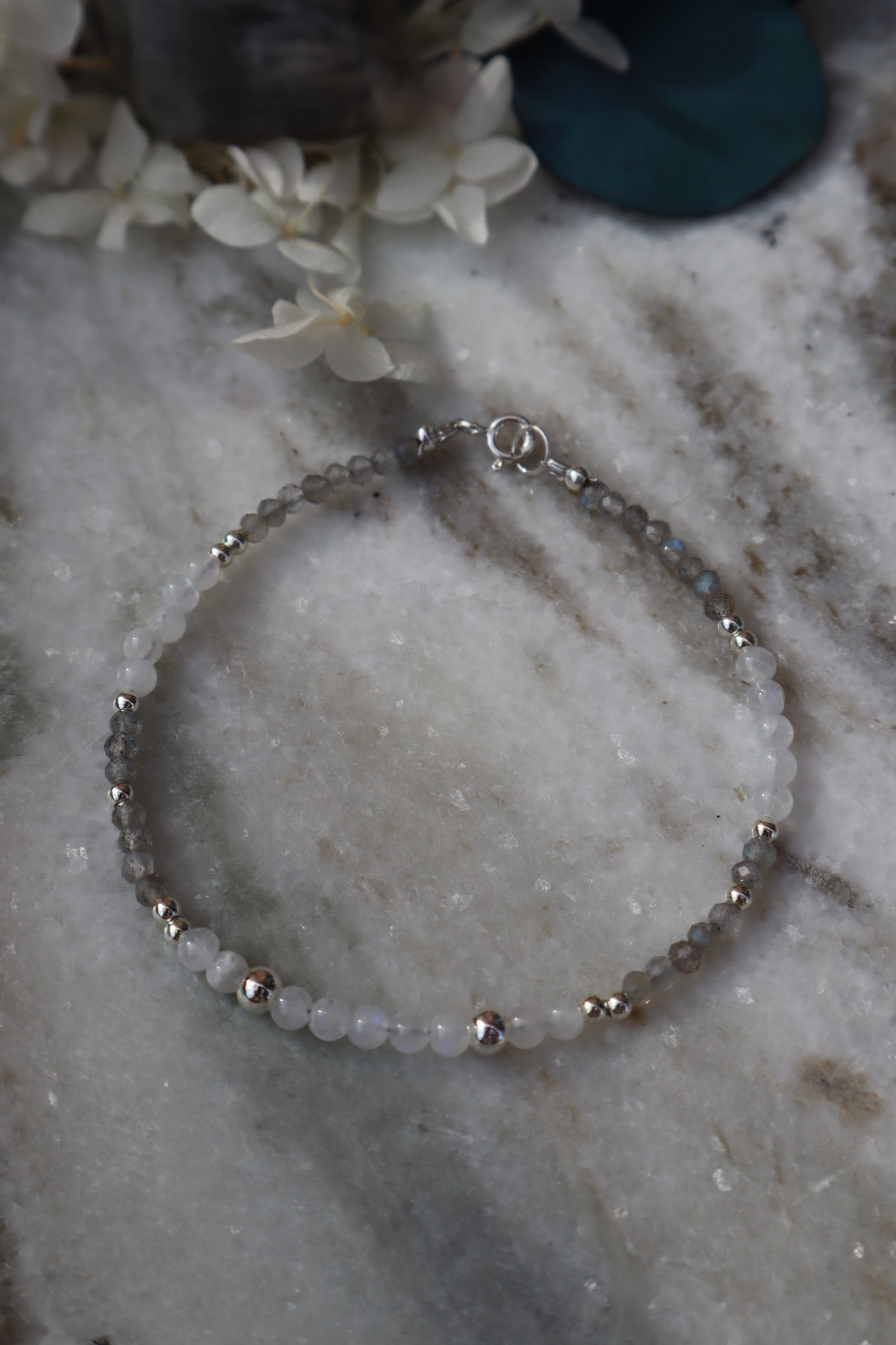 Armband aus Mondstein- und Labradoritperlen mit (vergoldeten) 925 Sterling Silber Details