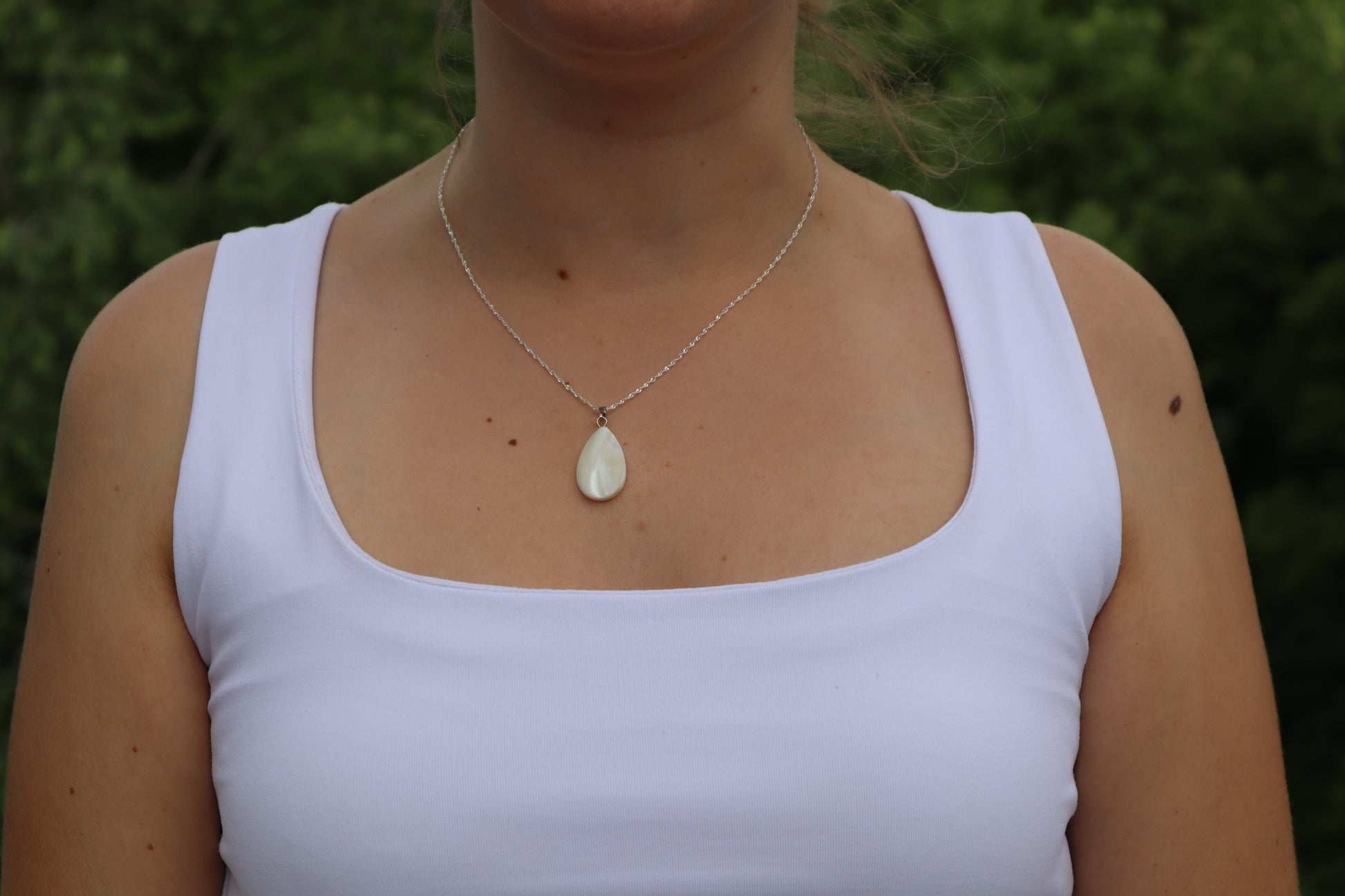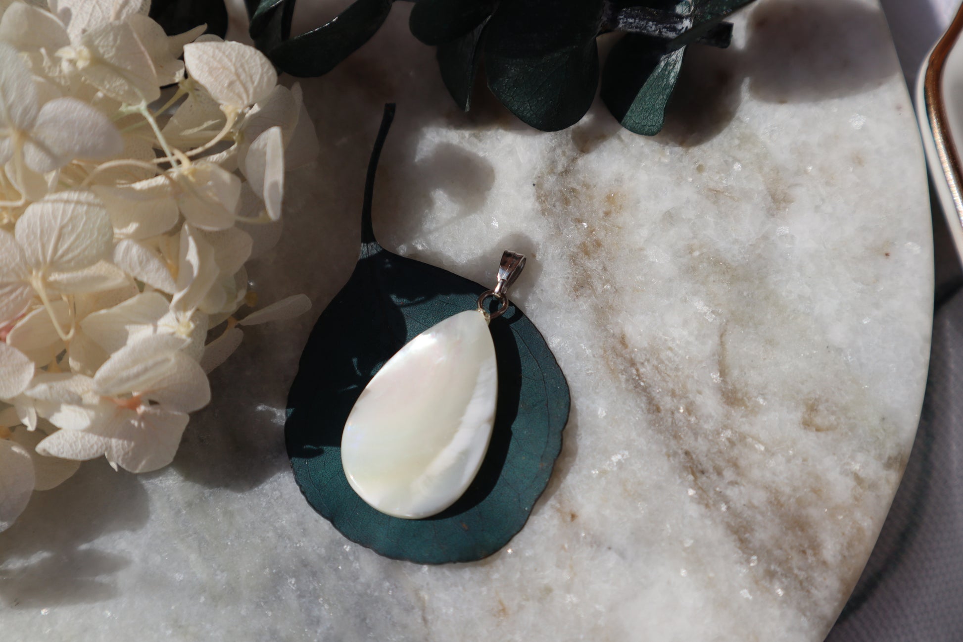 Anhänger aus Perlmutt (ca. 33 x 15 mm) an 925 Sterling Silber Kette deiner Wahl (schreib mir eine Nachricht, welche Länge du möchtest)