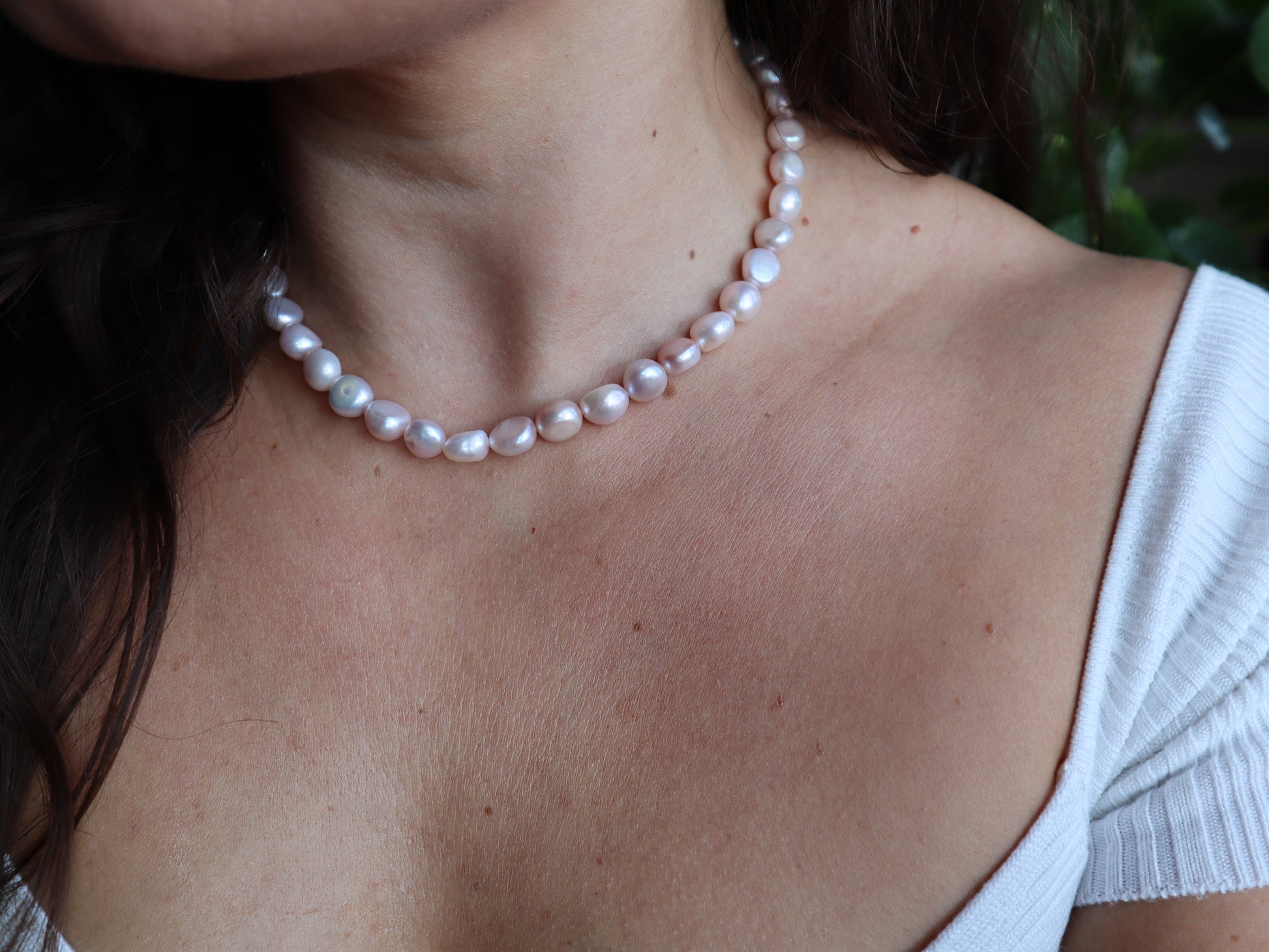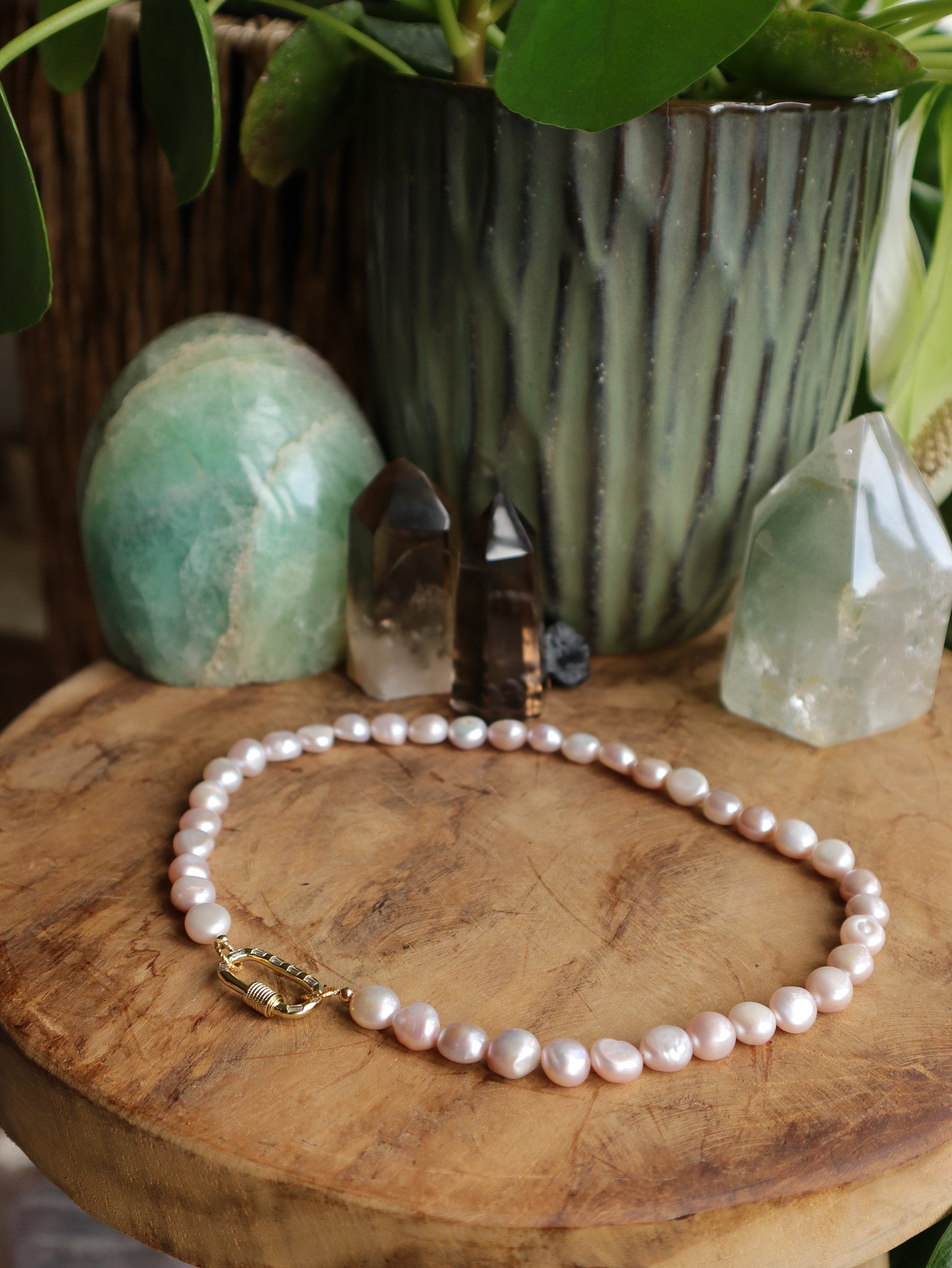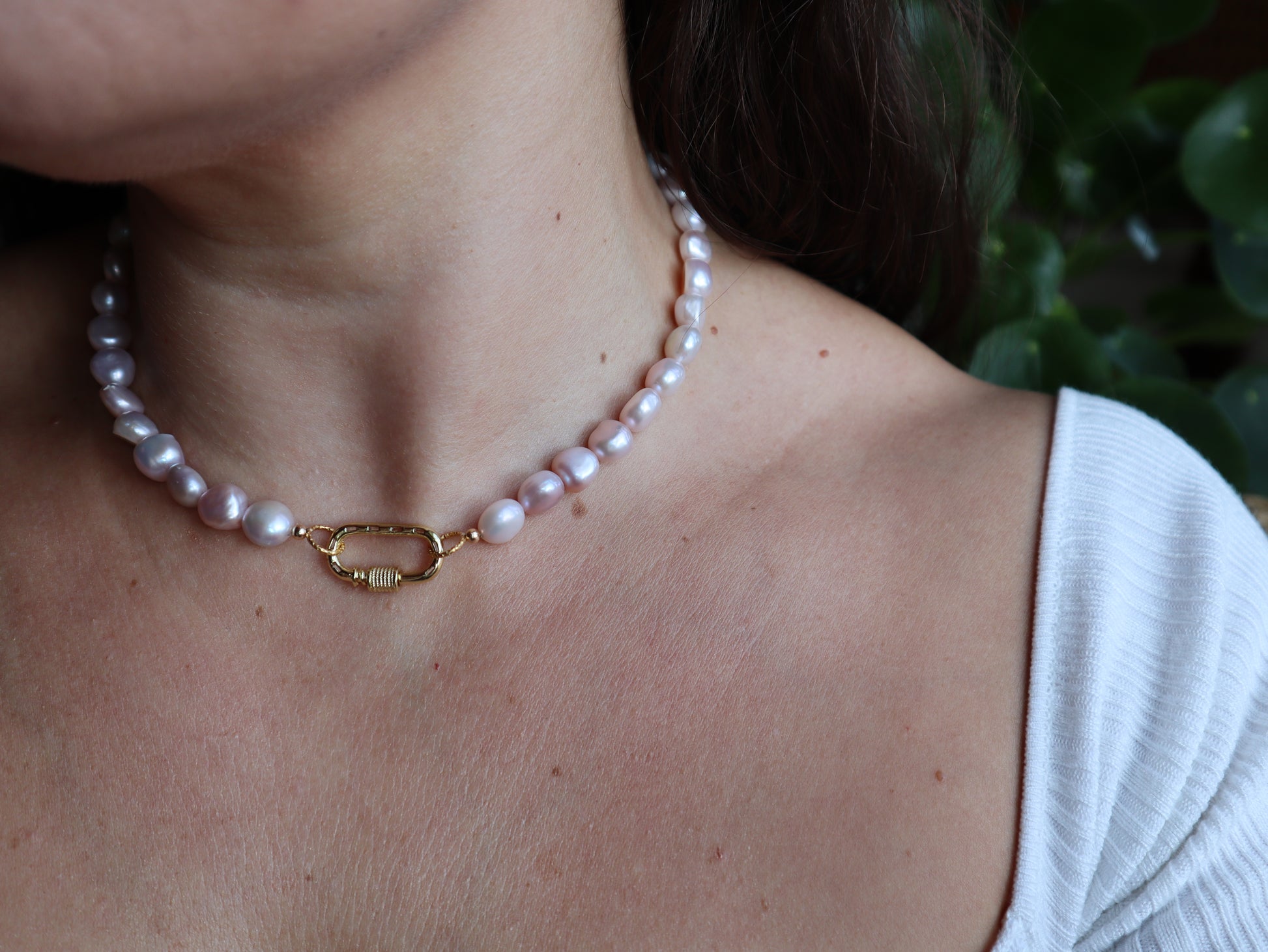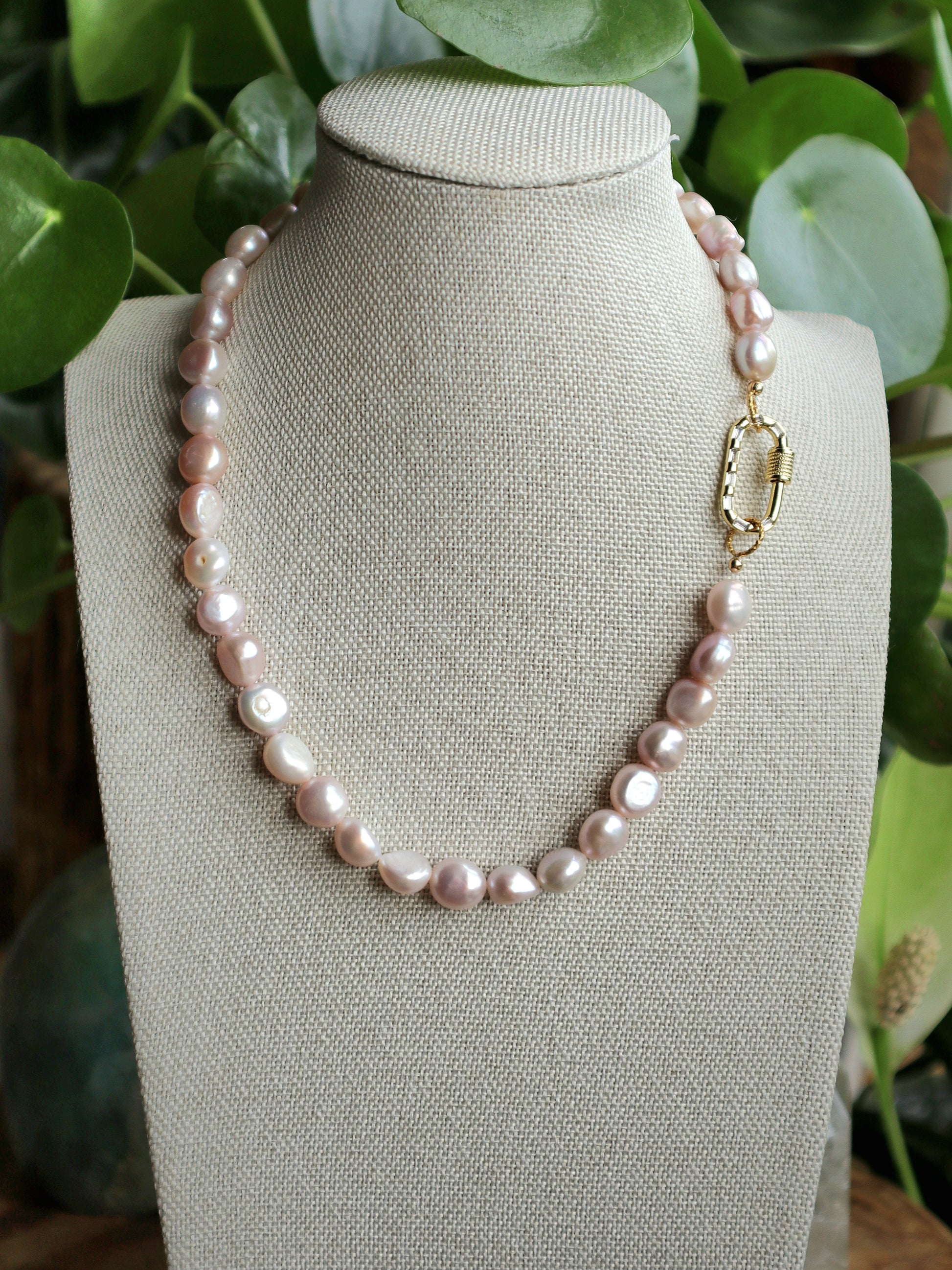 Rosè Süßwasserperlen Kette mit vergoldeten Karabiner Lock Anhänger
