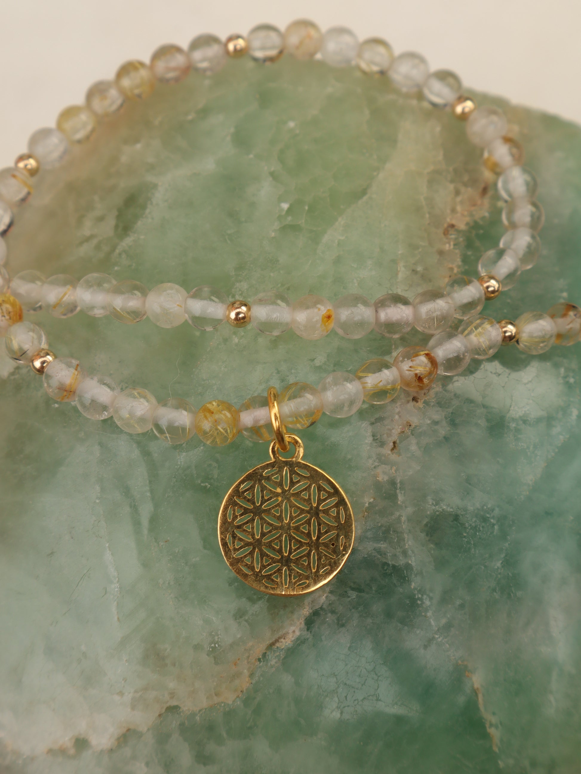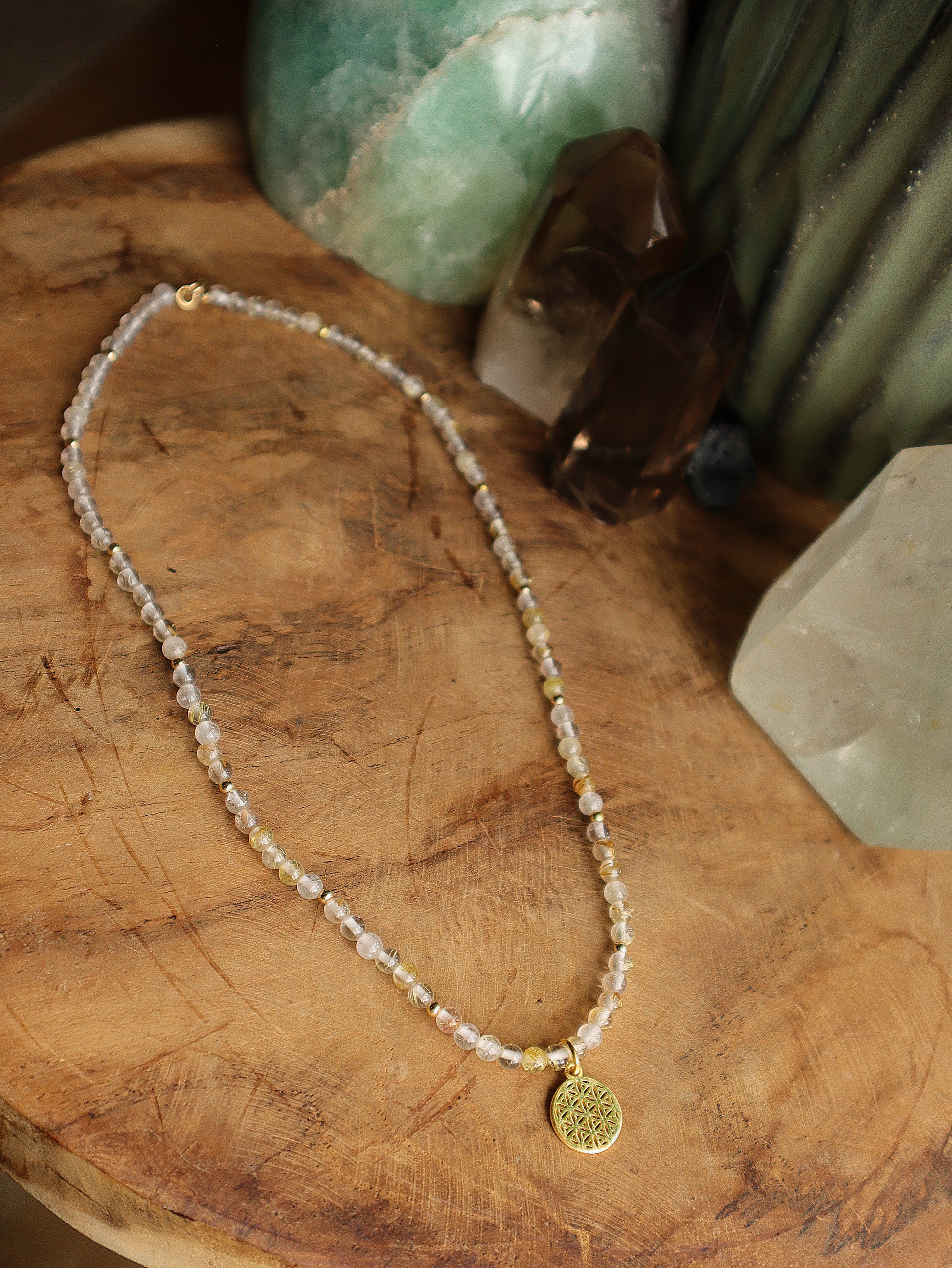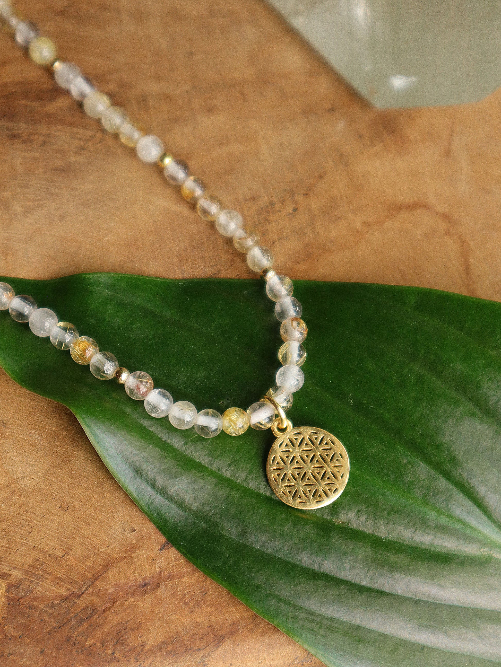 Rutilquarz Kette mit Blume des Lebens Anhänger