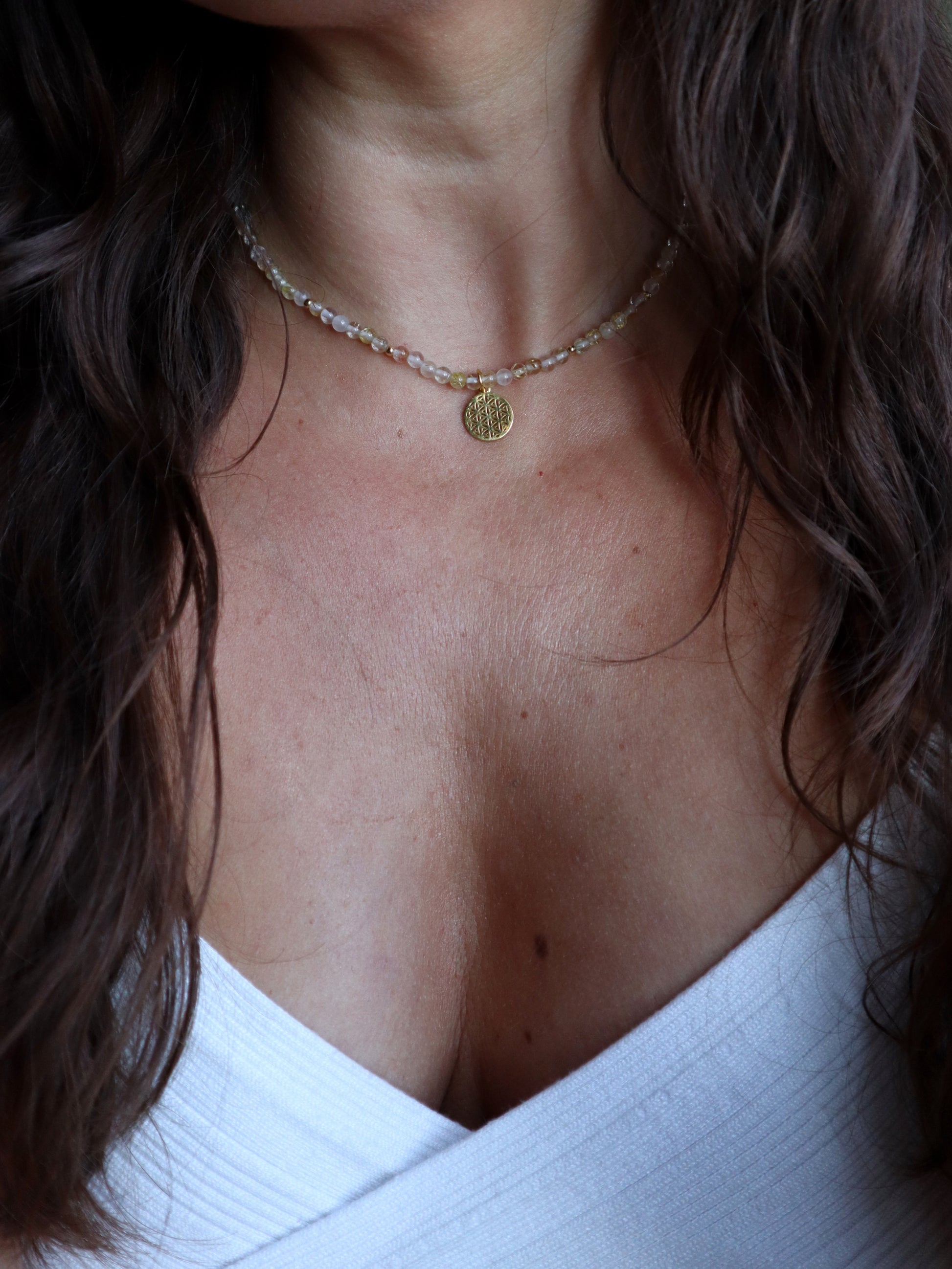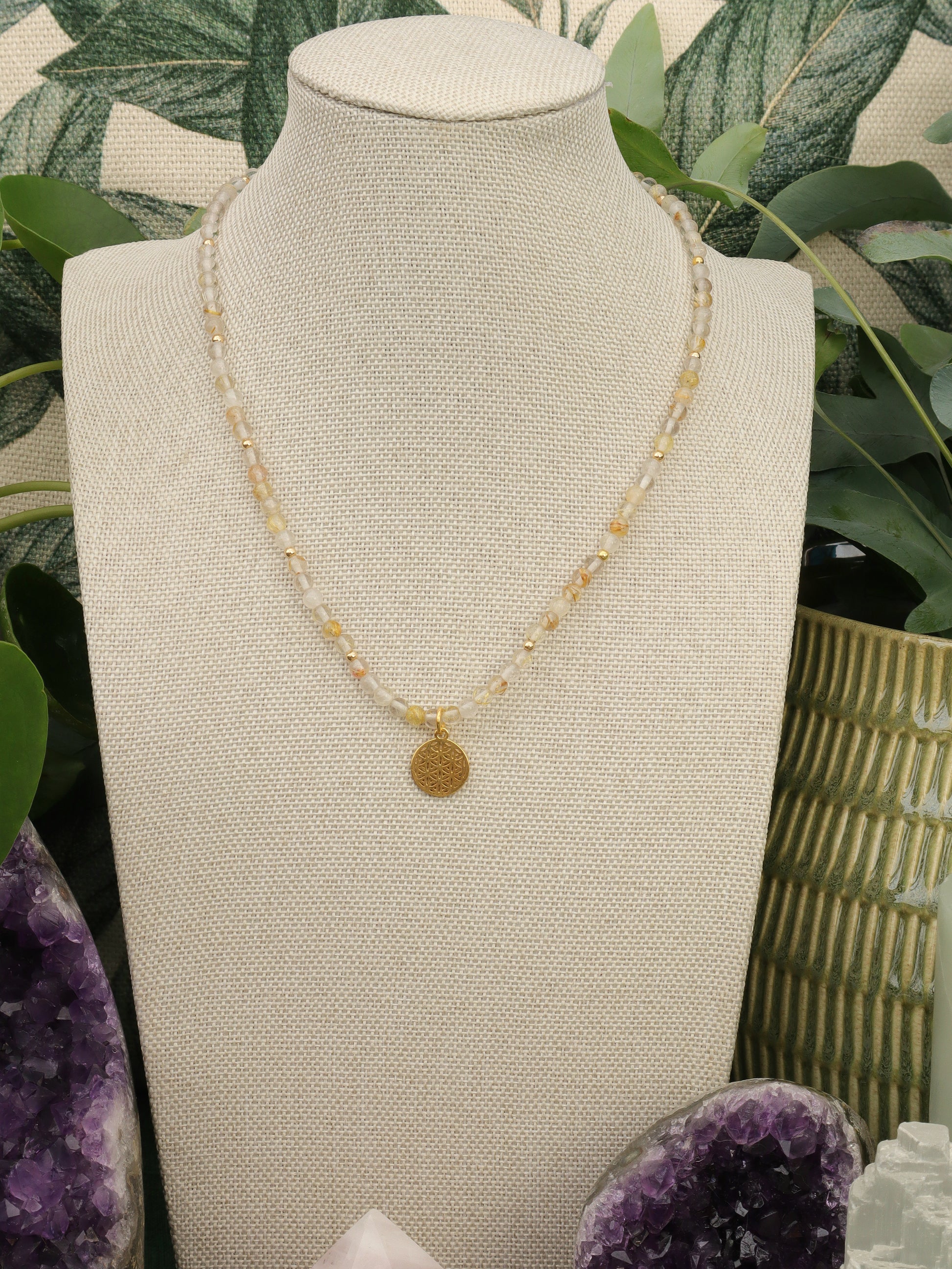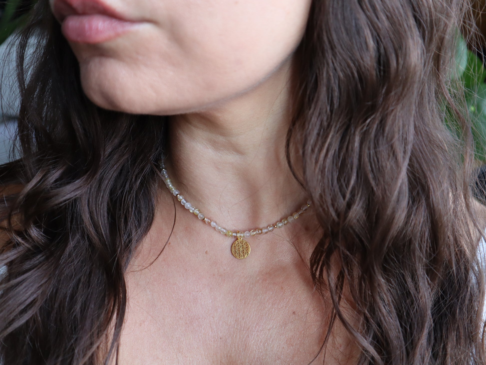 Rutilquarz Kette mit Blume des Lebens Anhänger