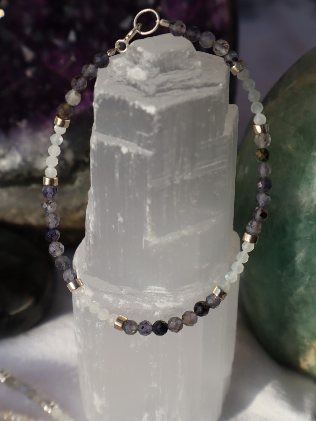 19 cm, mit 925 Sterling Silber Details (je nach Style mit Regenbogenmondstein und/oder vergoldet). Auf Wunsch auch mit Verlängerungskettchen, schreibt mir einfach eine Nachricht