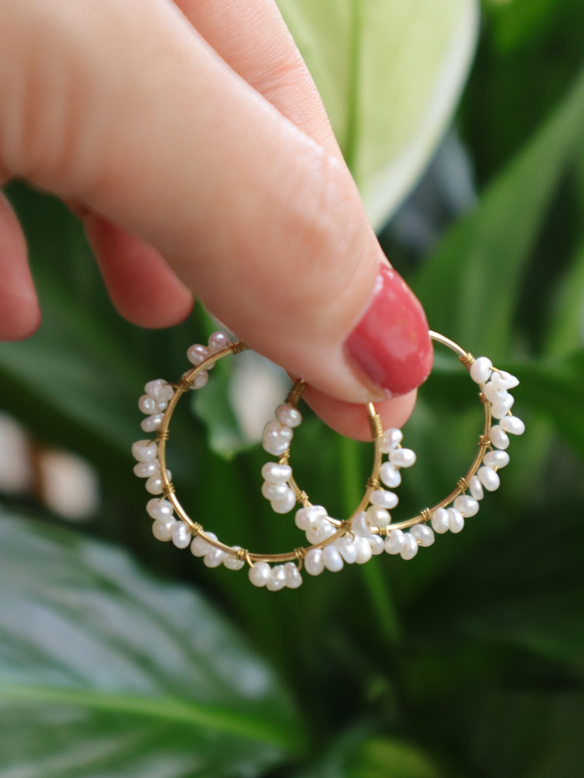 Süßwasserperlen Midi-Creolen, 925 Sterling Silber 14 k vergoldet, (⌀25 mm)