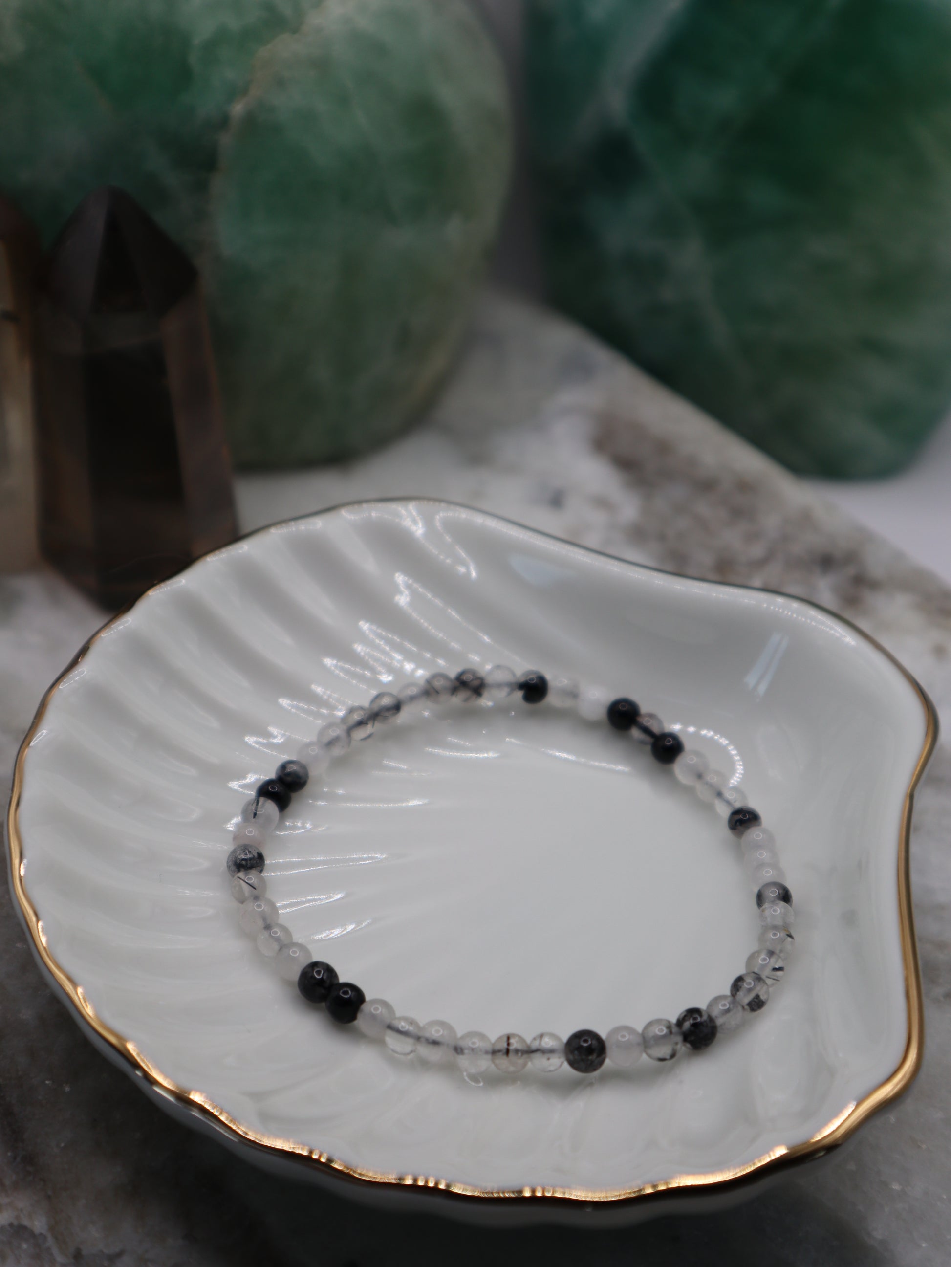 Turmalinquarz ist ein turmalindurchwachsener Bergkristall. Er wird als Stein der Gegensätze verehrt. So glaubten die alten Chinesen, dass dieser seinem Träger die Yin- und Yang-Eigenschaften im Körper und Geist harmonisiere.